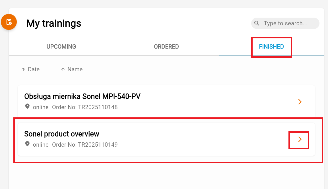 - On the Customer Panel go to My trainings (on the menu on the left).