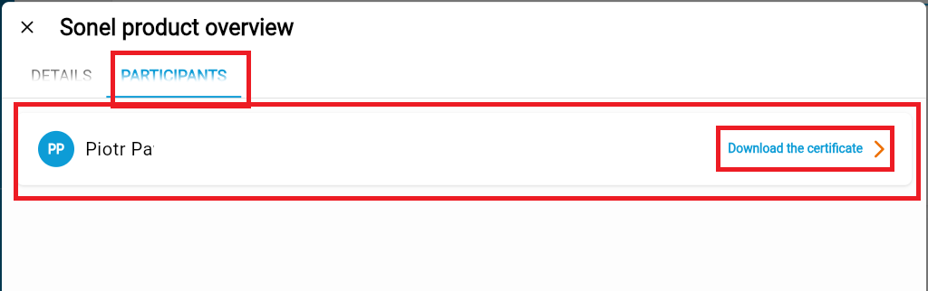 - A list of registered participants for the selected training will open. Click the "Download the certificate" button for the selected participants.