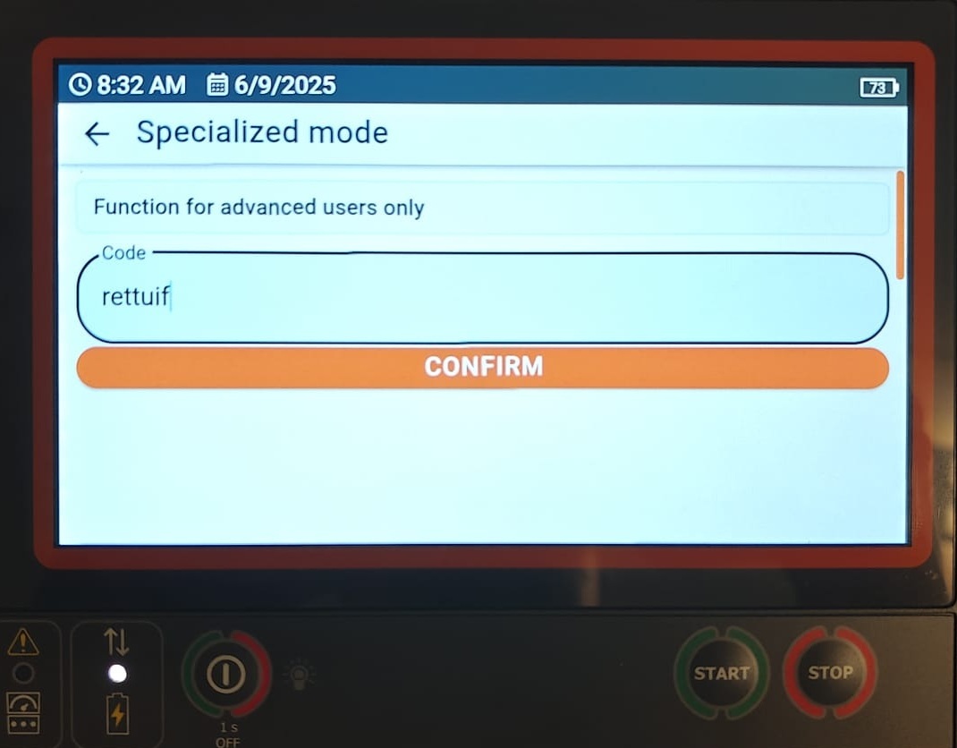 When the meter is in the login option, quickly press the start button five times. Then, in the special mode option, enter the "rettuif" code and confirm. The meter will reset to factory settings, and you must set a new login and password.