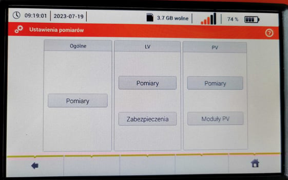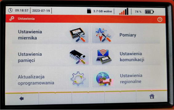 W menu ustawienia wybrać ikonę "Pomiary"