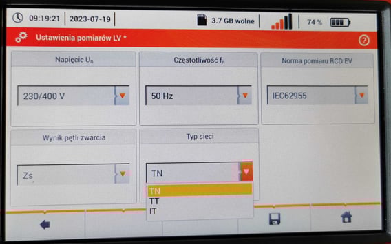 Brak możliwości wyboru pomiaru impedancji pętli zwarciowej L-PE i L-PE RCD w mierniku MPI540 i MPI540 PV najczęściej spowodowany jest wybraniem w ustawieniach układu sieci IT. Należy w ustawieniach miernika zmienić układ sieci na TN.