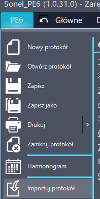 Czy można zaimportować protokoły stworzone w PE5 do PE6? Tak, można to zrobić za pomocą przycisku "Importuj protokół". Import jest możliwy tylko z PE5 do PE6.