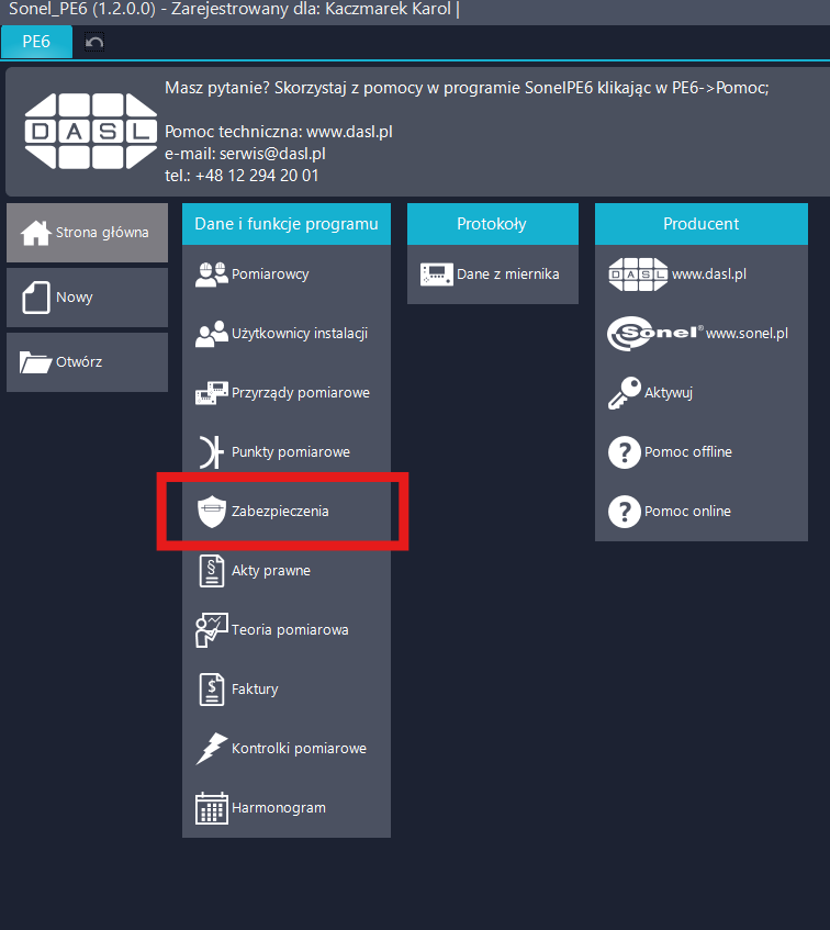 Uruchomić oprogramowanie Sonel PE-6.