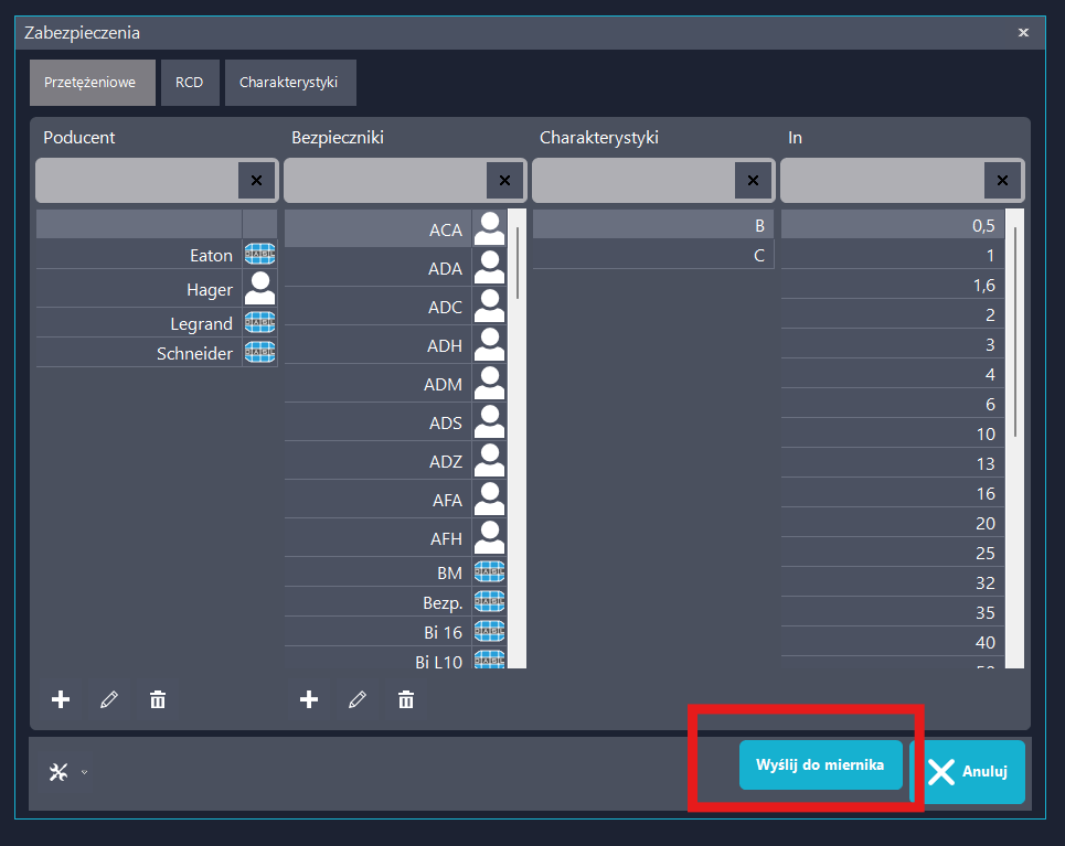 Wysłać zabezpieczenia da miernika