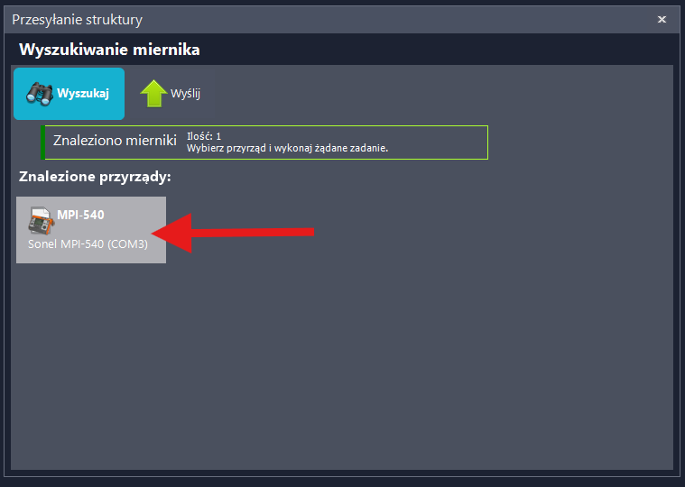 Wybrać "Wyślij do miernika"