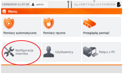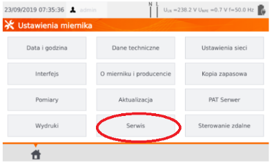 Konfiguracja miernika-> serwis